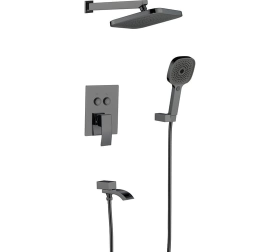 Смеситель скрытого монтажа для душа на 3 режима в цвете графит — решение для тех, кто ценит минимализм и удобство. Компактная квадратная панель аккуратно смотрится на стене, освобождая пространство в душевой зоне и подчеркивая современный стиль интерьера. Модель рассчитана на управление верхним и ручным душем, обеспечивая комфортное переключение потоков воды.