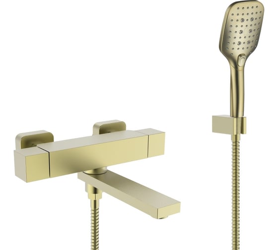 Смеситель термостатический для ванны и душа ViEiR матовое золото, настенный термостат V393533-S