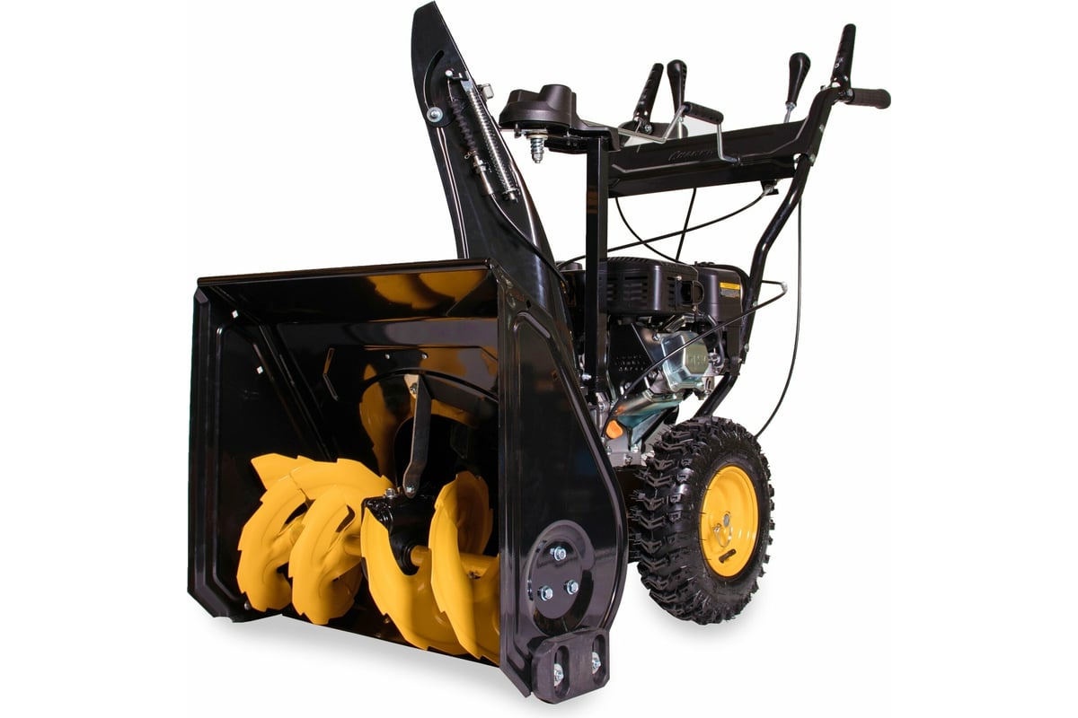 Благодаря двухступенчатой системе шнеков, дальность выброса снега достигает 11 метров.
