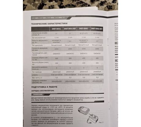Снегоуборщик аккумуляторный без АКБ и ЗУ DAEWOO DAST 4242Li
