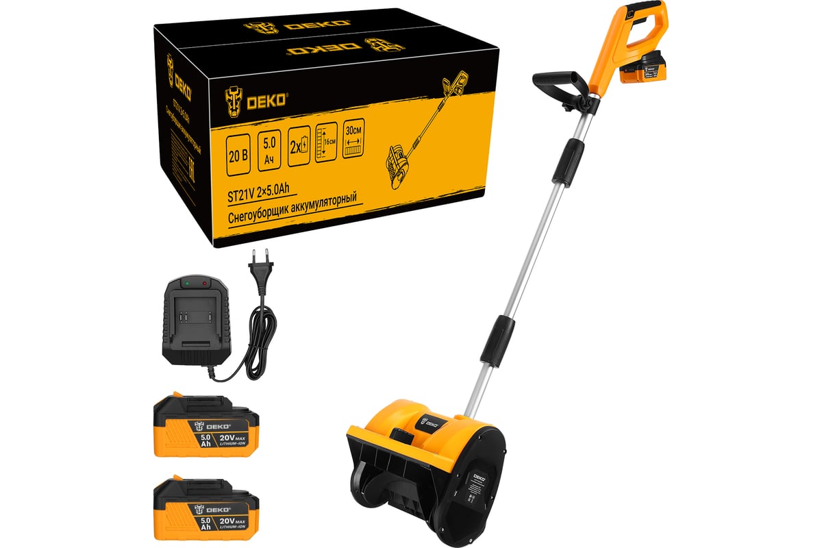 Снегоуборщик аккумуляторный DEKO ST21V, 20В, 2х5 Ач 085-4444