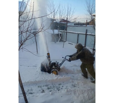Решил купить снегоуборщик, надоела лопатой мохать. Долго выбирал какую модель, сколько лошадиных сил, какого бренда, с каким размером ковша, ну и с какими ручками управления?! Просмотрев много обзоров по снегоуборщикам, выбрал именно эту модель и не пожалел. Самое главное это ручка управления дугой, а не как на велосипеде раздельные, хотя думал что такая не удобная, но оказалось как раз в ней то все удобство по глубокому снегу и маневрах, не представляю как его из глубокого снега за велосипедные ручки назад тянуть, (задняя скорость тут не о чём, как и на всех думаю, очень медленная) весит он не мало. По высоте ручка идеальна и удобная (мой рост 180). Мощность двигателя с запасом, в пол газа легко справляется. Расход бензина очень маленький. Площадь у меня на очистку не маленькая, заезд от ворот до дома 80 метров, вдоль дома 15 метров и за домом вторая парковка с разворотом, за 4 часа управился по глубокому снегу, теперь спина не болит, зато мышцы рук и ног как после спорт зала))) Узкие колеса тоже плюс. При сборке добавил шайбы увеличенные и гровера, масло 5w40 газпром синтетику залил автомобильное, проверенное годами. Редуктор был полный с завода. Так же смазал весь механизм управления отброса снега (все трущиеся детали, и вал в резинке тоже) идет плавно и не заедает чучку. Рад что купил именно эту модель и такого дизайна, для меня очень удобно. По акции купил за 42т.р.