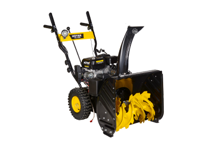 Установка оснащена бензиновым двигателем мощностью 7 л. с. с верхним расположением клапанов, адаптированным под работу при низких температурах. В качестве горючего используется обычный бензин АИ-92, который заливается в бак емкостью 3,6 л. Бензиновая модель мобильна и автономна, может использоваться в любых местах без привязки к электросети. Для упрощения запуска агрегат имеет электростартер, в случае разрядки АКБ можно воспользоваться ручным стартером. Модель оснащена ковшом размером 56х54 см и металлическим шнеком, который благодаря прочности и надежности конструкции легко измельчает даже твердые пласты снежного покрова. Снег выбрасывается в сторону на 15 м, при этом направление выброса можно легко поменять с помощью соответствующей ручки. Снегоуборщик имеет 2 ведущих надувных колеса с качественным рельефным протектором, который обеспечивает хорошее сцепление с поверхностью и исключает скольжение. Самоходная установка может двигаться вперед и назад, имеет 5 скоростных уровней вперед и 2 реверсные скорости.