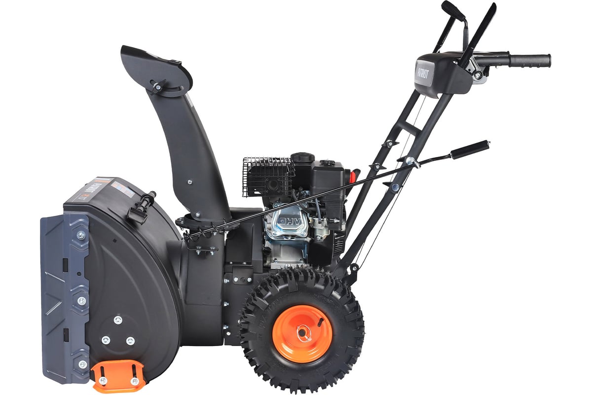 - Регулировка дальности выброса, угол выброса снега 70°;