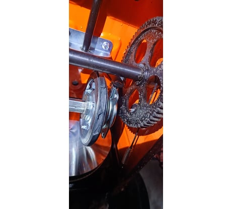 1. Смазываем внутри направляющие по которым скользит фрикцион (тарелку мазать нельзя!), оси колес, платформу на которой желоб стоит, все втулки пластиковые и зацеп левой ручки. Я использовал смазку "морскую" густая, липкая тянется как расплавленный сыр. Ненужную деталь из желоба демонтируем. Сразу натягиваем ремень шнека по инструкции! При нажатой ручке привода шнека прогиб 3-4 мм. У меня редуктор был смазан, но я туда еще рекомендуемой доложил 2. Для уборки липкого плотного cнега мажем желоб и импеллер силиконовой смазкой, лучше с фторопластом (оно же тефлон/ptfe) кидает и не забивается дальше 5 метров точно. Баллон стоит 300 руб хватит надолго. 4. После уборки вычищаем импеллер, иначе примерзнет все. Перед запуском проверяем что все крутится. Масло менял через 30 мин и еще раз через 5 часов. Черное как после 10 000 км :) Рекомендую посмотреть видео по работе от Американцев, они с большим опытом в этом. Если вы думаете, что Вы будите за него держаться, а он чистить забудьте :) нагрузка как от лопаты +/- только производительность раза в 3 больше. Идеальный вариант ровная площадка без утоптаного снега. Плотные сугробы он не жрет, буксует и все. Сначала ломаем лопатой, (Вы думаете она не понадобится больше ? Ха-ха-ха) а потом отбрасываем этот снег. Ремни с завода очень крутые Gates.