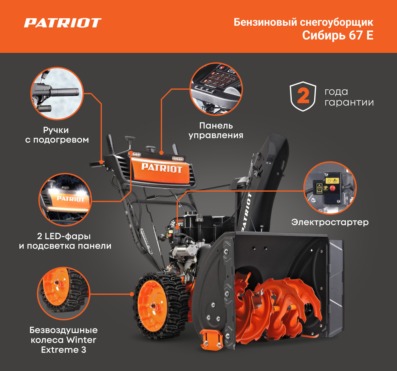 Снегоуборщик PATRIOT Сибирь 67 E 426108667 подходит для уборки снега и расчистки снежных заносов.