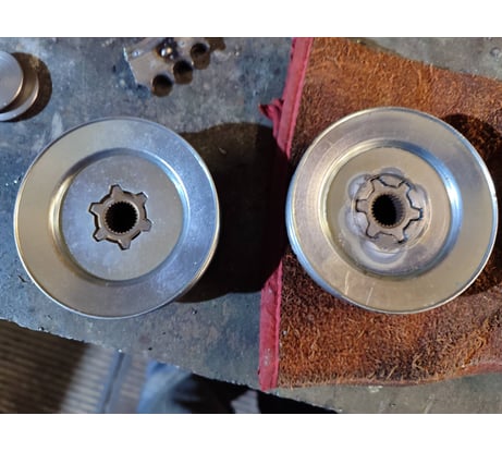 Снегоуборщик просто бомба, но есть один глобальный минус, который нужно срочно менять, на приводных шкивах гидромоторах стоит очень тонкая и мягкая прижимная шайба, в общем одна из которых ослабла, тем самым шкив соскочил и шлицы сорвались на одном из шкивов. Восстановил при помощи сварки и напильника, всё зафиксировал ещё на холодную сварку и толстую шайбу.