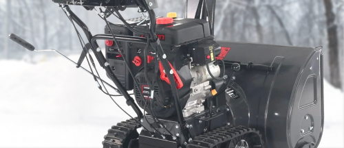 Снегоуборщик оснащён как ручным запуском, так и возможностью запуска от сети 220 В. 6 передних и 2 задние скорости, а также система отключения блокировки дифференциала с помощью курков под рукоятками обеспечивают отличную маневренность и облегчают освобождение от застрявшего снега.