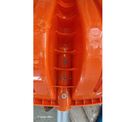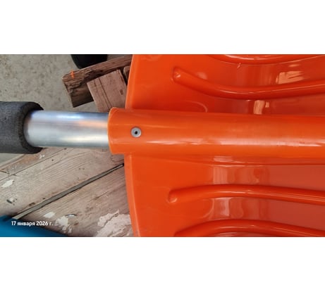 Через несколько минут работы начал отваливаться черенок от лопаты. Держался на 1 маленьком саморезе