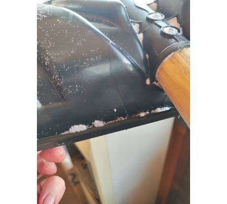 Раньше эти ковши ходили по 3 года, пока металлическая планка не начинала терять истершиеся заклёпки. Переклёпывал и дальше работал. Ковш делали из первичного пластика, матовый чёрный, без усиливающей окантовки - она не нужна на первичном пластике. Случайно сломали такой ковш снегоуборщиком Взяли новый ковш - неделя, ковш сломался. Взяли второй неделю назад - снова сломался. А просто ковши стали делать из вторичного пластика. Сделали усиливающую окантовку, но толку от неё ноль. Где теперь искать хорошие ковши? Жадность производителя испортила такой ковш!