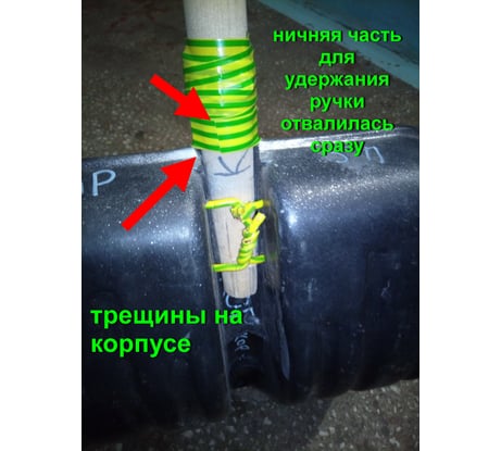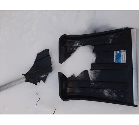Купил лопату. Красивенькая такая... Насадил на черенок, думаю, сейчас почищу снег. На улице плюс 5. Не мороз, когда пластик хрупкий. Первый раз воткнул в снег, лопата затрещала... Второй раз вставил, стал поднимать, черенок остался в руках, а лопата в снегу. Фуфло голимое! Не покупайте никогда этот бренд!!! Фото прикладываю. Видно, что практически не работал, даже этикетка не стёрлась.