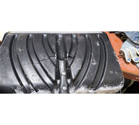 При чистке замёрзшего снега,лопнула.ребра жёсткости на ней -для красоты.не держит нагрузку.маловата в размере