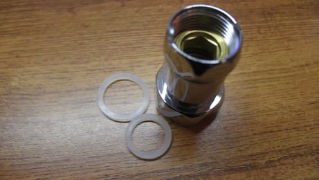 1. Во время установки одну прокладку выдавило внутрь трубы, а вторую просто вдавило в зазор между трубкой и гайкой (см. фото). 2. В центральную трубку с обоих концов вкручиваются фланцы, удерживающие накидные гайки. Резьба на них сделана в одну сторону вращения (скорее всего правая). Из за этого при монтаже при закручивании накидных гаек фланец раскручивается с какой-либо из сторон. Это бывает, если накидная гайка сильно трётся о фланец, например, при небольшом перекосе труб подводки. Решение простое и классическое: на одном конце резьба левая, а на другом - правая. Это почему-то не сделано.