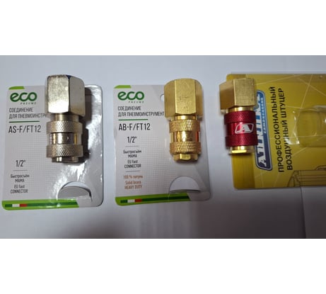 Соединение разъемное быстросъемное мама х G3/8F, латунь ECO AB-F/FT38 имеет автоматический клапан, перекрывающий канал и предназначено для установки на выходном конце различных элементов пневмосистемы для создания автоматических прерывателей подачи воздуха. Может быть использовано вместо байонетных гаек на некоторых отечественных компрессорах. Латунный корпус исключает возможность появления коррозии.