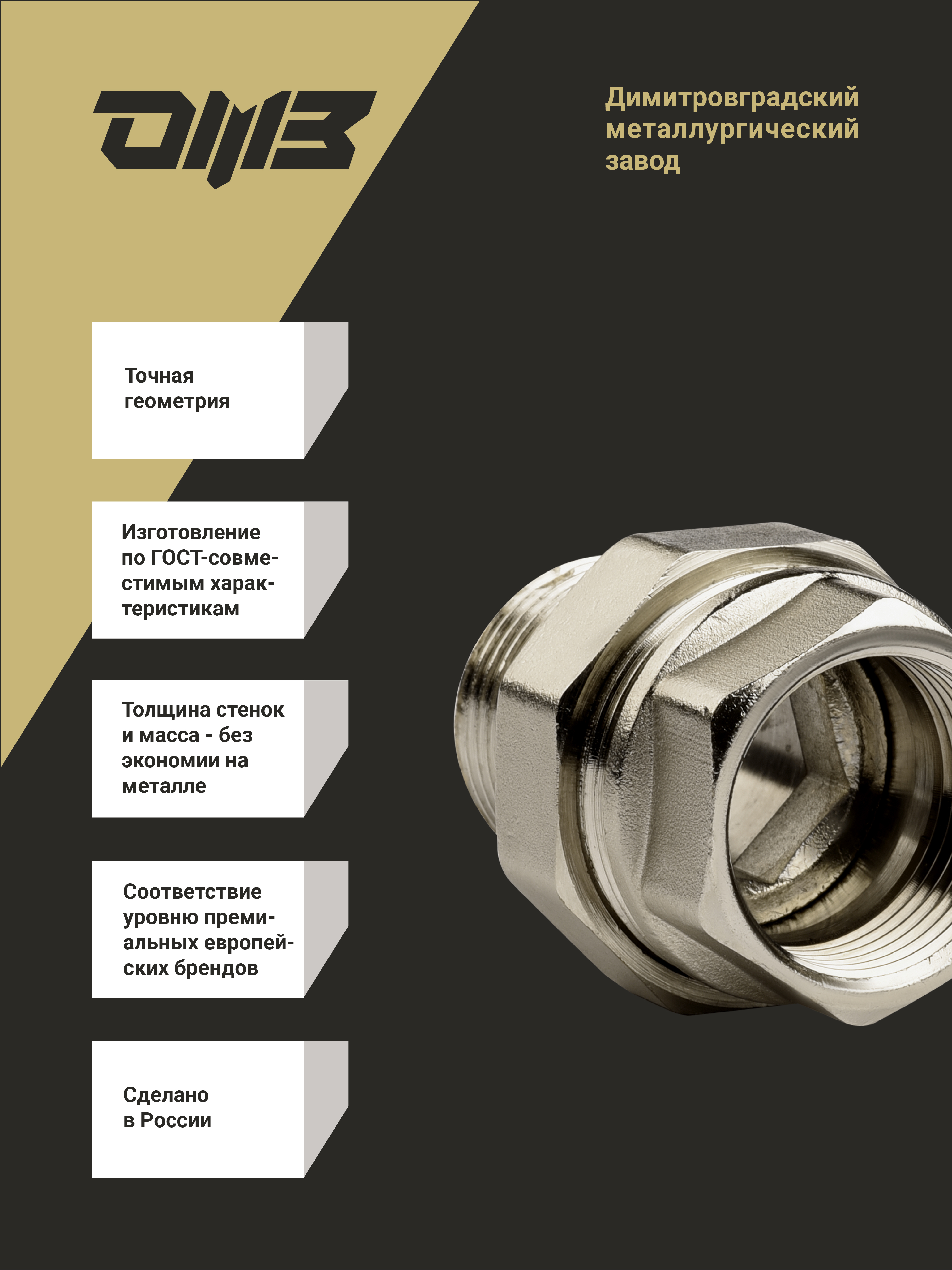 Соединение разъемное в сборе прямое (американка) ДМЗ DN20 (3/4'') ВР/НР латунь никель (упаковка 10 шт) ДМЗ.012.20Н10