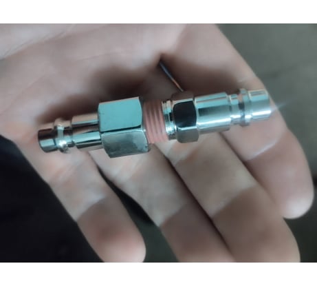 Хороший переходник на компрессор, сделал при помощи его фитинг на ПНД водопровод с штуцером под компрессор, для продувки водопровода, в соединитель положил прокладку на 1/2 силиконовую, соединитель в результате плотно сидит не травит хоть от руки закручивай