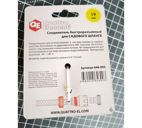 Отзывы о соединителе быстроразъемном 3/4" QUATTRO ELEMENTI 646-003