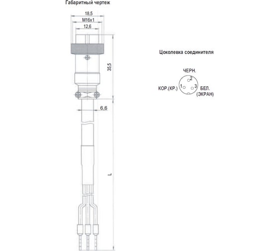 Соединитель к датчикам CS S16C-1-E-10 - М16х1. Прямой, 3х контактный, кабель экранированный L=10 м.