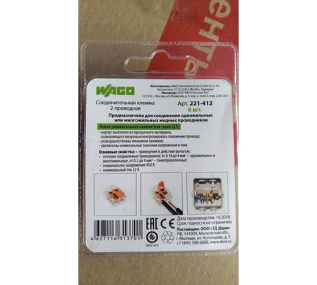 Отзывы о соединительной 2-х проводная клемма WAGO 221-412 6 шт 2560