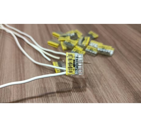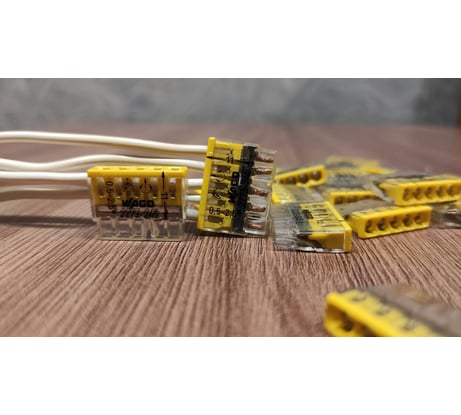 Отзывы о соединительной клемме для быстрого монтажа WAGO 2273-245 5-ти проводная, 0,5-2,5 кв.мм, 450В, 24А, с пастой, 20шт 2543