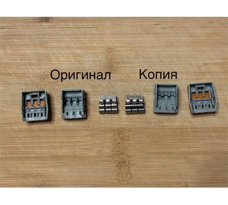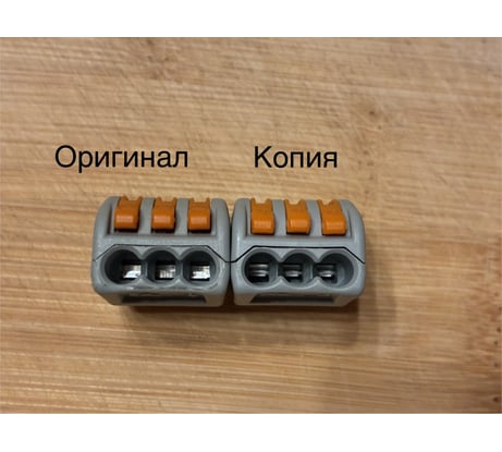 В наличии есть 412, 413 и 415 из старых поставок. Зажимы у них поднимаются легче, чем на этих. Появились сомнения в оригинальности купленных, в итоге пришлось разобрать и сравнить. Оригинал и недавно купленные похожи снаружи на 99%, только надпись зеленым цветом на оригинале чуть пониже, а вот внутри есть различия. У оригинала шина состоит из трех отдельных клемников, а на копии шина целиком. Возможно, что при разном сечение проводов на копии, на тонких проводах, будет меньше прижим. В целом все очень похоже, но «Дьявол кроется в мелочах». Дальше проверю на устойчивость к коррозии, потом дополню отзыв.