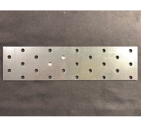 Пластина сделана не очень аккуратно. Лицевая сторона относительно гладкая, ровная, на тыльной присутствуют заусенцы. Углы и кромки острые. Размеры 50*200*1,6мм. Саморез диаметром 5,5мм входит в отверстия очень плотно. Пластина вполне рабочая, можно простить все недостатки, но не толщину, уменьшенную на 20%.