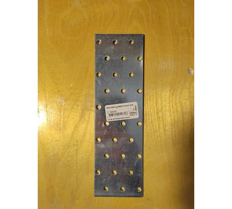 Пластина среднего качества. Сделана не очень аккуратно. Лицевая сторона - гладкая, ровная, на тыльной присутствуют заусенцы, углы и кромки острые. Размеры 60*200*1,5мм. Саморез диаметром 5,5мм входит в отверстия очень плотно.