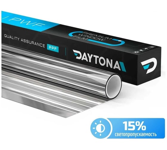 Солнцезащитная пленка DAYTONA - тонировка с зеркальным серебряным оттенком снаружи. Пленка создает комфортное затемнение в помещении и снижает уровень проникающего тепла. Она образует светоотражающий экран, который отражает солнечные лучи и нейтрализует вредное УФ-излучение, защищая мебель и предметы интерьера от выцветания. Пленка устраняет блики на телевизорах и мониторах, а также создаёт приватность в помещении благодаря эффекту односторонней видимости в дневное время суток.