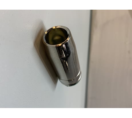 Сопло формирует стабильный факел плазмы, подходит для резки черного металла толщиной до 12 мм. Коническая форма обеспечивает хорошую видимость зоны реза. Минус в том, что внутренний канал подвержен эрозии при работе с оцинкованными заготовками. Для штатных режимов на плазморезах средней мощности ресурс сопла приемлемый.