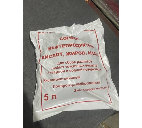 Сорбент для адсорбции кислот – минеральное негорючее вещество, в состав которого включены волокна из синтетики. Наполнитель состоит из пяти килограмм компонентов с хорошей впитывающей способностью.