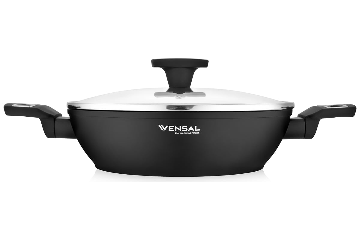 Сотейник с крышкой VENSAL Velours noir 26 см VS1004 обеспечивает равномерный прогрев и качественную обжарку. Работает на любых типах плит: керамика, электричество, газ, индукция.