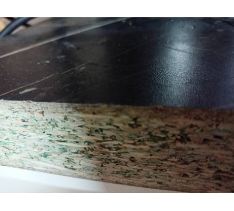 Столешницу распиливал на две части, на столешницу для посудомойки и приставной шкафчик. Удивил срез, имеет зеленоватые прожилки, т.е. влагостойкая. Торец из качественной ПВХ. Покрытие надежное, крепкое - не бумага и не краска с лаком.