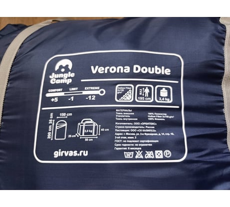 Спальный мешок Jungle Camp Verona Double, двухместный, две молнии, цвет синий 70958 – просторный и теплый двойной спальник. Предназначен для отдыха на природе в прохладные дни весенне-осеннего периода.