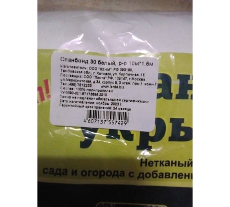 Отзывы о спанбонде 10x1.6 м, 30 г/м² СУФ белый ООО КЗНМ 531655