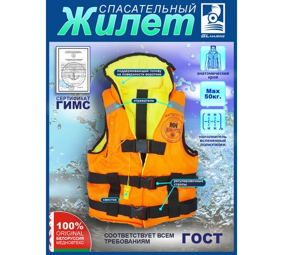 Технические характеристики спасательного жилета GL Marine СПЖ50