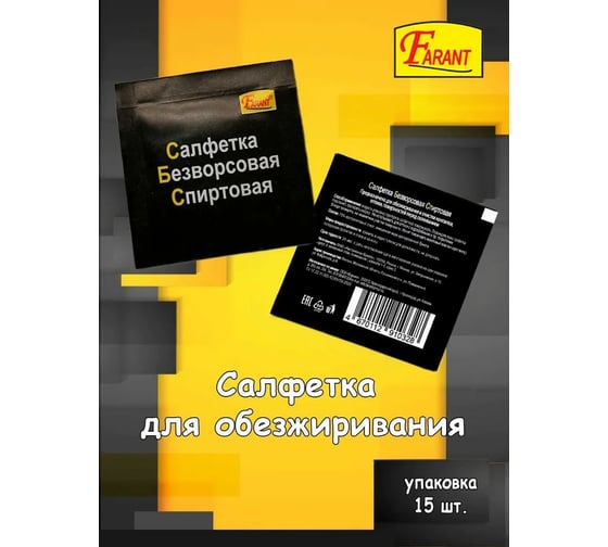 Спиртовая салфетка для обезжиривания перед склеиванием, очистки оптики, контактов FARANT 15 шт. f-16
