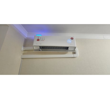Хороший кондиционер, искал именно с притоком воздуха, вывели в откос окна, шланг воздуховода короткий - 1,5м, покупал отдельно воздуховод 41мм 10 метров, коннекторы подходят, на 4 кондиционера хватило. По инструкции максимум 2м, но по другому не получилось бы, кондиционер итак в 20 см от штор. Если вентиляция хорошая, то пока кондиционер не повешен, напор из трубы итак хороший. Этот в гостинную, т.к. площадь побольше, в спальни модель подешевле.