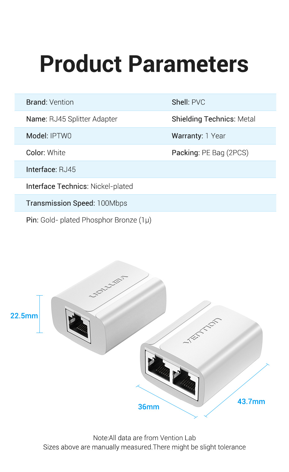 Технические характеристики VENTION RJ45 F / 2хRJ45 F 8p8c (2шт.) Белый IPTW0