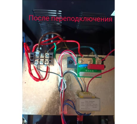 Теперь о грустном... Распаковал, собрал, подключил. Начал работать и зарыдал крокодильими слезами. Гараж подключен кабелем СИП 4х25 от подстанции 100-110 метров кабель. При работе притухает свет просадка на фазе др 160в приварки не происходит... Везу стаб на 15кВа подключаю через него. Приварка очень слабая... Посидел подумал и в итоге выбрал рубрику "аннулирование гарантии" она у нас и так особо то не работает))) на трансформаторе маркером нвписано 220. Силовая часть собрана на двух трансформаторах размещенных на одном сердечнике. Имеем по заводу два начала обмоток подключены к Фазе два конца обмоток подключены к нейтрали через "реле" управления. Трансформатор управления двух обмоточный. Черный и делый ддя сети 220в черный и красный для сети 380в. Красный провод заизолирован термоусадкой и пристегнут к пучку пластиковой стяжкой. В итоге откидываю от клемника провод нейтрали и провод идущий от него на "реле", от фазного клемника откинул жилу одной из первичных обмоток и пересадил его на освободившийся клемник. Откинул концы обмоток сидящих на реле. Вызвонил мультиметром какой конец принадлежит какой обмотке. В итоге получаем следующую схему: "Начало 1транса - фаза 1 / начало 2 транса - конец 1 транса / конец 2 транса на выход реле/ реле вход - фаза 2. По итогу получил полностью исправно рабочий инструмент. В момент работы свет даже не моргает. На данный момент работает уже 3 дня. Сердечник не греется, транс не гудит. Позже дополню отзыв