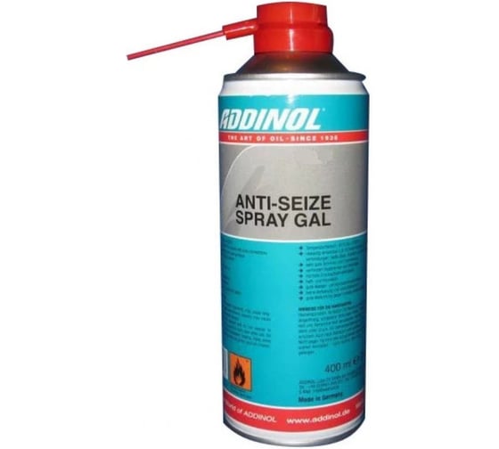 ADDINOL Anti-Seize Paste GAL Spray — это универсальная высокотемпературная паста, изготовленная на основе полусинтетического масла с добавлением литиевого мыла в качестве загустителя и цветных металлов для придания разделительных и антифрикционных свойств.