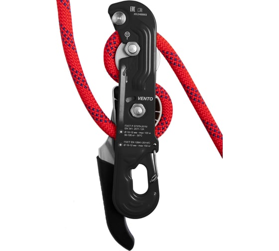 Стопор присоединяется к привязи через карабин. При этом веревка устанавливается и вынимается из устройства без необходимости его снимания с привязи. Подвижная пластина устройства имеет открывающуюся скобу для фиксации на карабине. Канат закладывается в одной плоскости, что гарантирует минимальное скручивание веревки при длительных спусках. Рекомендуется использовать на канатах Ø 10-12 мм «Высота» и «Профистатик» ТМ VENTO (ГОСТ EN 1891/А).