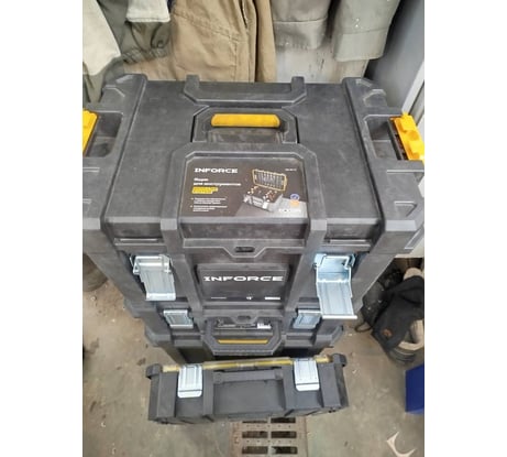 Отличный ящик.!!! Очень силтно напоминает желто черный бренд. Стоять и сидеть на нем можно без проблем (вешу 90 кг). Крышка очень крепкая м ребрами жесткости и резиновым уплотнителем. Я даже запрыгивал на ящик,такое чувство что он двже не гнется под моим весом (специалисты при должной сноровке и упорстве сломать конечно могут все). У меня несколько таких ящиков которые я соединяю и использую вместо стремянки,очень удобно. Ручки крепкие, замки сталтные, размер по ширине что надо (пользуюсь тележкой бош). Проходят даже в узкие двери на телеге. Внутри есть органайзеры тире разделители, но я ими практически не пользуюсь. Этот ящик мы использовали как верстак, маленькую туру, можно даже собрать мини леса. В багажник помещается без проблем. Даже аккумулятор с машины для зарядки вожу в нем. Отличная покупка, есть еще классный органайзер с желтыми лотками для мелочи. Очень хорошая покупка!!!