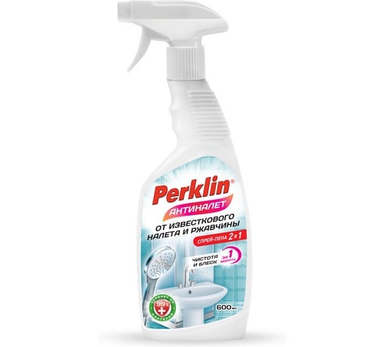 PERKLIN АНТИНАЛЕТ – универсальное моющее средство на основе лимонной кислоты. Подходит для чистки ванны, душевой кабины, сантехники, фаянсовых изделий и кафеля от известкового налета, потеков ржавчины, мыльных разводов и солевых отложений.