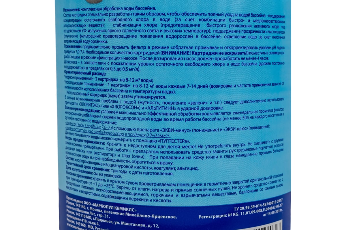 Эффективно борется с появлением водорослей и осветлением воды, стабилизирует хлор, поддерживает чистоту.