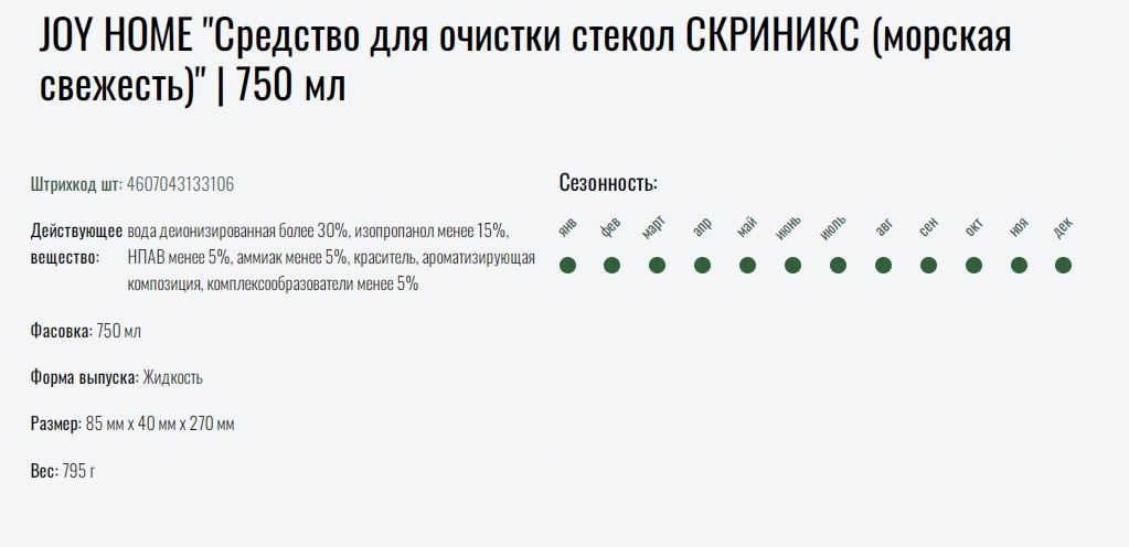 Средство для очистки стекол Joy Морская свежеть 750 мл 12 шт 4607043133106