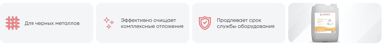 CIPTEC FERRUM - профессиональный реагент для безразборной и разборной промывки промышленных котлов, теплообменников систем отопления, бойлеров, водонагревателей, чиллеров, конденсаторов выполненных из чёрных металлов и сплавов от сложносоставных минеральных отложений накипи, ржавчины.