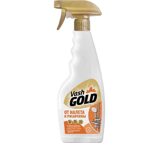 Средство от налета и ржавчины VASH GOLD спрей, 500 мл 307284 мгновенно удаляет следы мыла, известкового налета, ржавчину, мочевой камень, плесень и грибок.