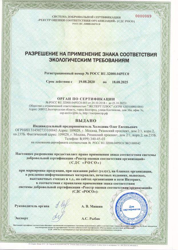 Имеет сертификат экологической безопасности, что подтверждает 100% биолазлагаемость и смываемость. Можно использовать в домах с септиком.