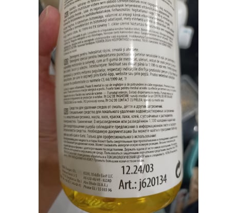 Супер продукт отз известного бренда Kiehl. Спасает практически от всех загрязнений на разных поверхностях-жвачка, смола, краска, жир. В отличии от других растворителей имеет приятный цитрусовый запах