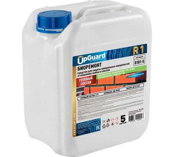 Средство для защиты минеральных поверхностей UPGUARD R1 БИОРЕМОНТ, готовый состав, для защиты от грибка и плесени, срок защиты до 15 лет, 5 л, 0181-5 (O181-5)